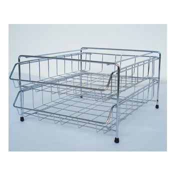 Em aço inoxidável. Ideal para organizar documentos na secretária.